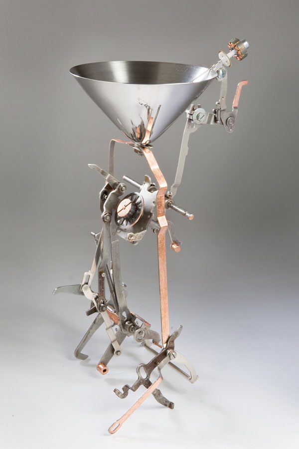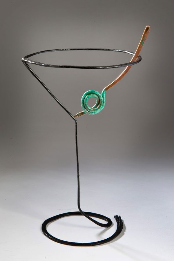 Doug Zaruba and his Vortex 13 sponsored a contest for some sculptors to create fanciful martini glasses, and then threw a martini themed party at his gallery in Frederick. I’ve got to say, it was a great idea and a big success. Lots of people squeezed in and enjoyed the artistry, company and ambiance.