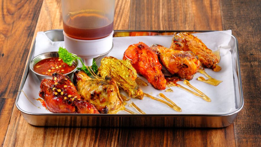 Because these images are part of the reveal and advertising for their first franchise, we spent time planning what to feature and how to present it. While most customers order carryout, the restaurant also offers dine-in seating. To reflect the actual customer experience—and similar to many BBQ and wing spots—we chose to photograph the food in the aluminum trays lined with white butcher paper used in-house.